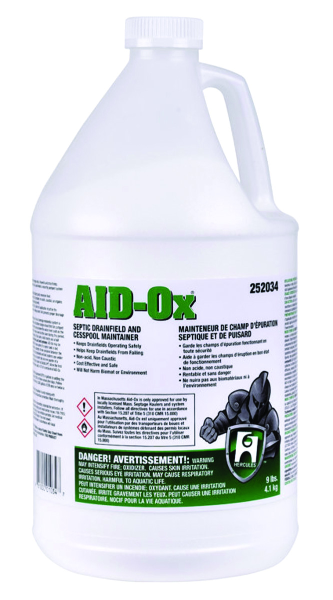 Hercules AID-Ox from Oatey is a mild oxidizing powder formulated to maintain proper drainage and treat clogged and sluggish cesspools, seepage pits, drywalls and drainfields. Frequently used on seasonal rentals, it detoxifies and deodorizes stagnant drainage areas, enhancing conditions for aerobic bacterial growth. It comprises an oxygen-based porosity foaming restorer, enhancer and cleaner. It is recommended to use this product when drainage systems are sluggish, waterlogged and emitting foul odors. It contains no acids, caustics or organic solvents. 800-321-9532; www.oatey.com